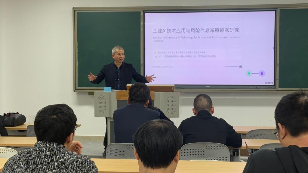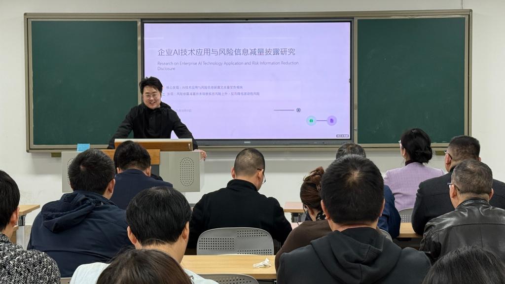 樊汝杰博士围绕企业 AI 技术应用风险信息披露展开深入分享他指出,AI技术通过提升信息透明度,重塑企业风险信息的传递机制,并对分析师关注、投资者调研等传统外部信息渠道形成一定替代,从而降低了对冗长文本式风险披露的依赖。他特别强调,在研发能力相对薄弱或公司治理水平较低的企业中,AI技术更能显著实现风险披露文本的“有效压缩”,这一发现为各类企业推进数字化转型提供了有针对性的实践启示。